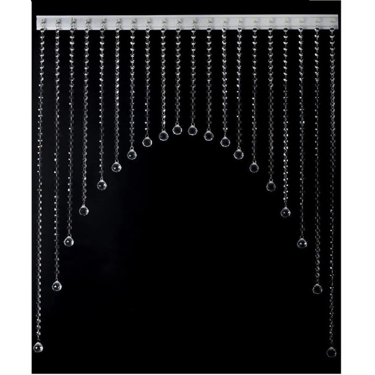 پرده کریستالی مدل هلال از برند معتبر آریا کریستال از جدیدترین محصولات برند آریا کریستال می باشد که جهت ورودی راهرو، اپن آشپزخانه، اتاق عقد، باغ تالار، تالار عروسی، رستوران، کافه، والان پرده پارچه ای و به طور کلی در داخل منازل، محیط های تجاری و مناطق لوکس، جهت زیبایی و دیزاین بهتر قابل استفاده است. پرده کریستالی مدل هلال با عرض 150 سانتیمتر و ارتفاع 150 سانتیمتر می باشد. عرض این پرده دارای 30 رشته و فاصله پنج سانت بین رشته ها با گوی شماره سی در انتهای رشته ها با ارتفاع 30 سانت کوتاهترین و 150 سانت بلندترین به همراه چوب پرده مخصوص پرده کریستال می باشد. جنس کالا از دانه های کریستالی درجه یک و شفاف به همراه حلقه های ضخیم کروم رنگ با رنگ ثابت تشکیل شده است. در انتهای هر ریسه، گوی های کریستالی درجه یک با گوی گیر به کار رفته است. فاصله بین هر رشته ریسه روی چوب پرده 5 سانتی متر است. این ریسه ها همگی به یک چوب پرده دو تکه به عرض 75 متصل شده اند. چوب پرده مخصوص مورد استفاده در این ریسه ها، بدون نیاز به پایه، بست و گیره و تنها با پیچ و رولپلاک به سقف یا دیوار قابل اتصال است. ویژگی یاد شده در مورد چوب پرده های استفاده شده در این پرده ها، این پرده های کریستالی را نسبت به سایر پرده های کریستالی متمایز میکند. برای تمیز کردن این پرده کافیست از دستمال نخی مرطوب یا ترجیحا دستمال نانو بدون رطوبت استفاده نمایید.