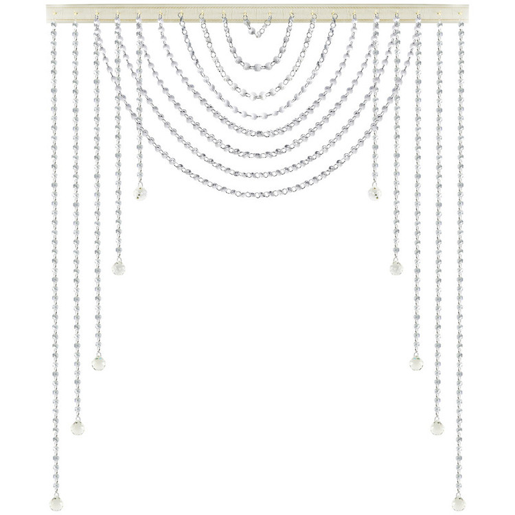 پرده کریستالی جهت ورودی راهرو، اپن آشپزخانه، اتاق عقد، باغ تالار، تالار عروسی، رستوران، کافه، والان پرده پارچه ای و به طور کلی در داخل منازل، محیط های تجاری و مناطق لوکس، جهت زیبایی و دیزاین بهتر قابل استفاده است. جنس کالا از دانه های کریستالی درجه یک و شفاف به همراه حلقه های ضخیم کروم رنگ با رنگ ثابت تشکیل شده است. در انتهای هر ریسه، گوی های کریستالی درجه یک با گوی گیر به کار رفته است. فاصله بین هر رشته ریسه روی چوب پرده 5 سانتی متر است. این ریسه ها همگی به یک چوب پرده متصل شده اند. چوب پرده مورد استفاده در این ریسه ها، بدون نیاز به پایه، بست و گیره و تنها با پیچ و رولپلاک به سقف یا دیوار قابل اتصال است. ویژگی یاد شده در مورد چوب پرده های استفاده شده در این پرده ها، این پرده های کریستالی را نسبت به سایر پرده های کریستالی متمایز میکند. برای تمیز کردن این پرده کافیست از دستمال نخی مرطوب یا ترجیحا دستمال نانو بدون رطوبت استفاده نمایید.
