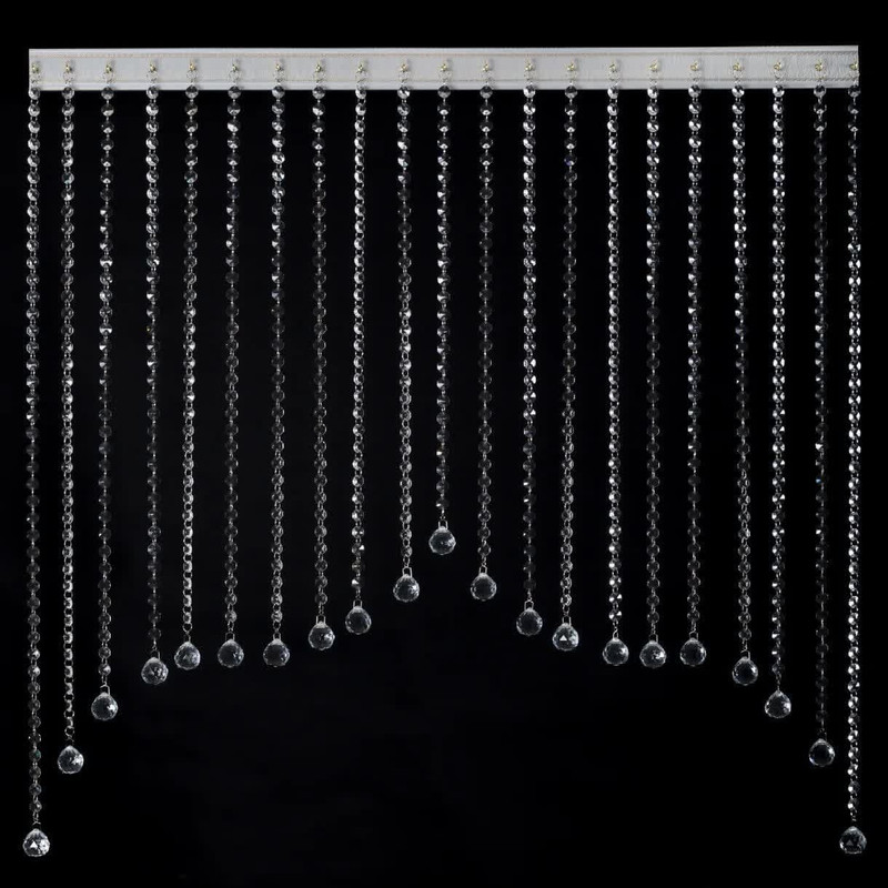 پرده کریستالی ساسانی از برند معتبر آریا کریستال از جدیدترین محصولات برند آریا کریستال می باشد که جهت ورودی راهرو، اپن آشپزخانه، اتاق عقد، باغ تالار، تالار عروسی، رستوران، کافه، والان پرده پارچه ای و به طور کلی در داخل منازل، محیط های تجاری و مناطق لوکس، جهت زیبایی و دیزاین بهتر قابل استفاده است. پرده کریستالی مدل ساسانی با عرض یک متر با 21 رشته و فاصله پنج سانت بین رشته ها با ارتفاع بلندترین 100و کوتاهترین 50 با گوی شماره سی در انتهای رشته ها به همراه چوب پرده مخصوص پرده کریستال می باشد. جنس کالا از دانه های کریستالی درجه یک و شفاف به همراه حلقه های ضخیم کروم رنگ با رنگ ثابت تشکیل شده است. در انتهای هر ریسه، گوی های کریستالی درجه یک با گوی گیر به کار رفته است. فاصله بین هر رشته ریسه روی چوب پرده 5 سانتی متر است. این ریسه ها همگی به یک چوب پرده متصل شده اند. چوب پرده مورد استفاده در این ریسه ها، بدون نیاز به پایه، بست و گیره و تنها با پیچ و رولپلاک به سقف یا دیوار قابل اتصال است. ویژگی یاد شده در مورد چوب پرده های استفاده شده در این پرده ها، این پرده های کریستالی را نسبت به سایر پرده های کریستالی متمایز میکند. برای تمیز کردن این پرده کافیست از دستمال نخی مرطوب یا ترجیحا دستمال نانو بدون رطوبت استفاده نمایید.